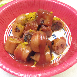 「カリーブルストを作りたいからカレー粉とケチャップ持参しました!」