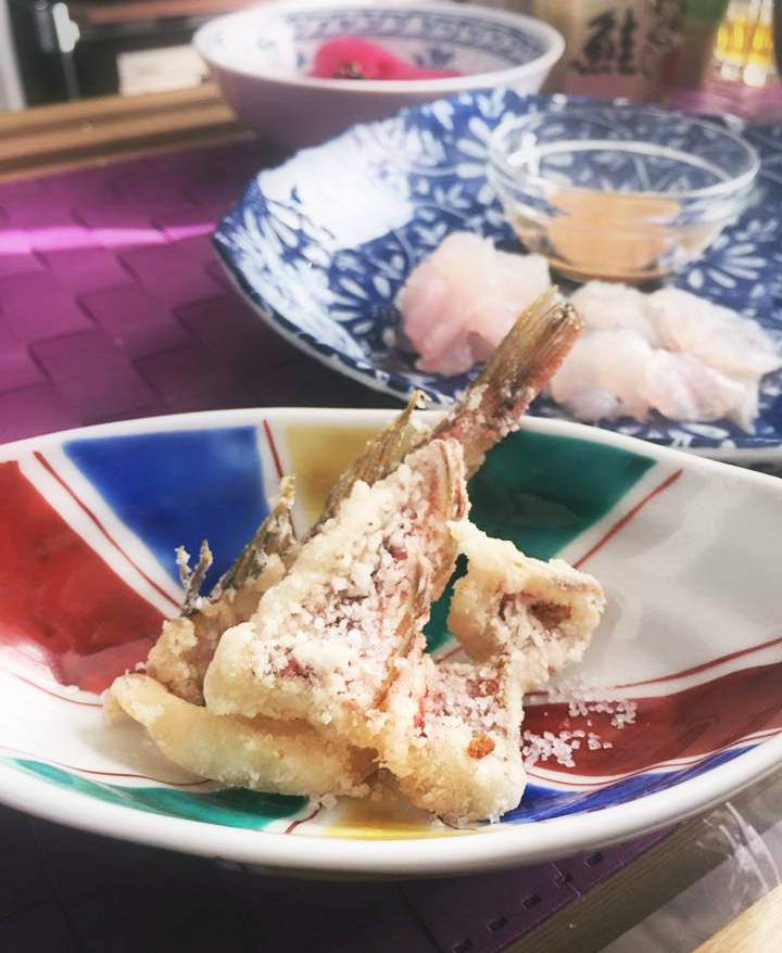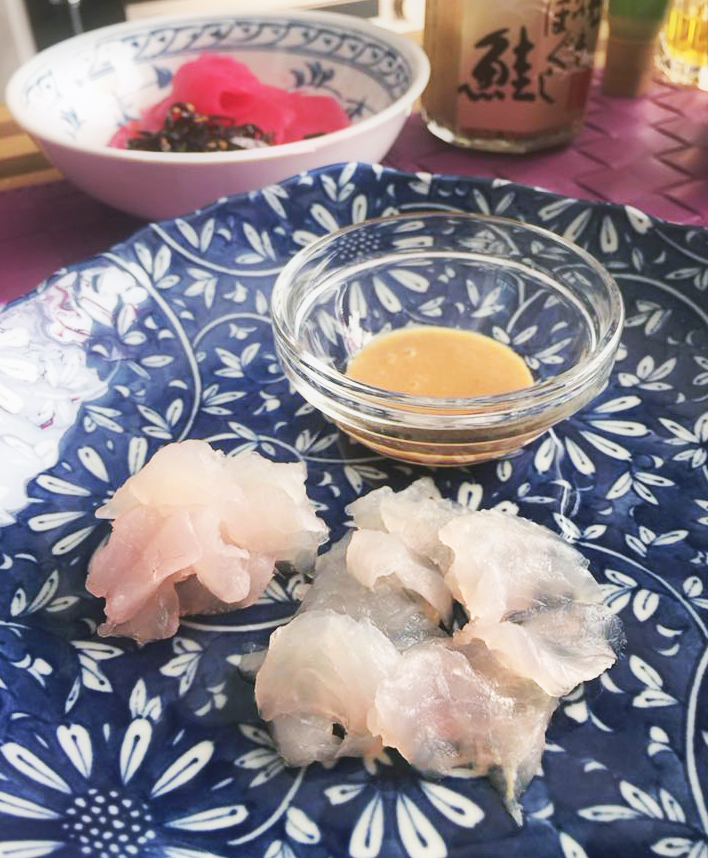 カワハギは刺身にして肝醤油で、トラハゼは天ぷらに。